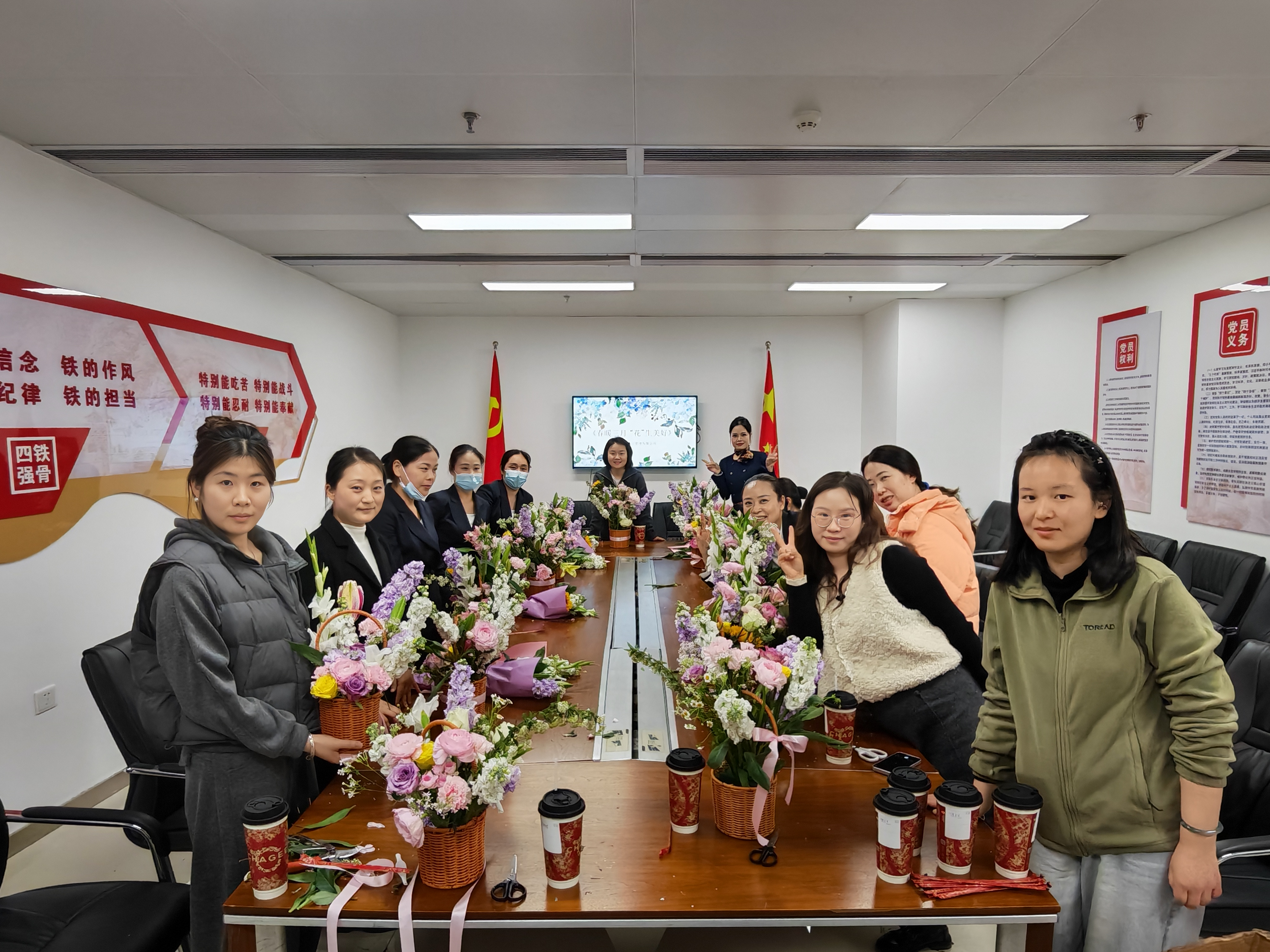 豫東南公司、信陽公司精心組織開展插花主題活動。活動現場花香四溢、氛圍融洽,女職工們跟隨插花視頻,認真學習插花技巧,精心搭配枝葉與鮮花,發揮創意修剪造型。大家相互交流、互幫互助,在歡聲笑語中完成了一件件花藝作品。此次活動既讓女職工在感受花藝之美中放松身心、增進情誼,也展現了她們積極向上、優雅自信的精神風貌,有效增強了團隊凝聚力。